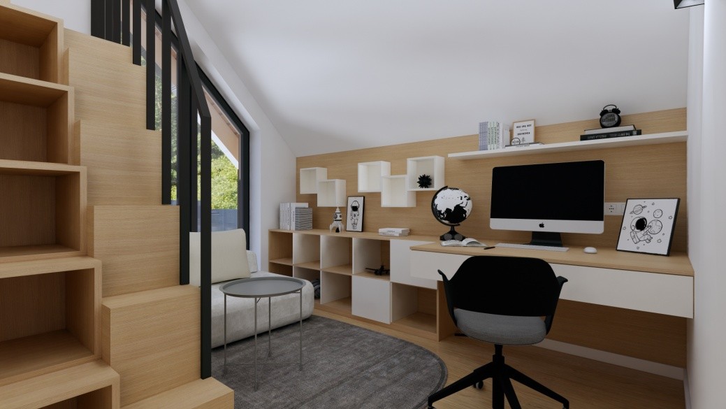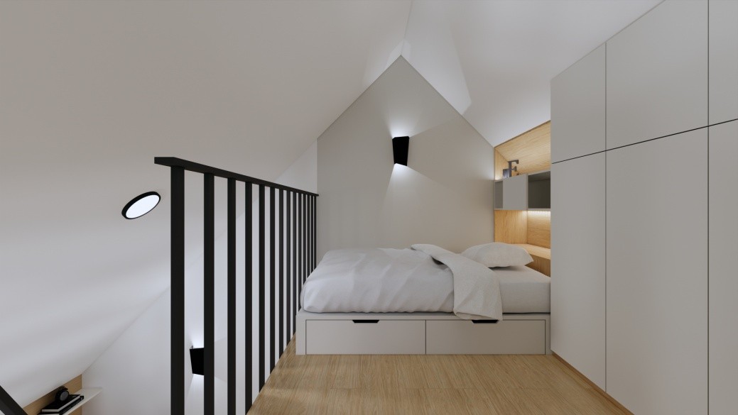 additional space above the children’s rooms (total 17.20 m²), open to the roof structure and accessible via internal stairs – ideal for play areas, reading corners, or storage.
