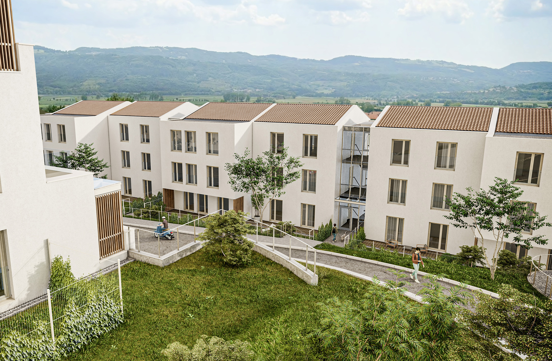 The project is located in a quiet environment of Ajdovščina, close to natural and cultural landmarks, and all essential infrastructure, such as schools, shops, and health facilities. The project also includes external arrangements with green areas and children’s playgrounds, providing a pleasant and safe living environment for families.