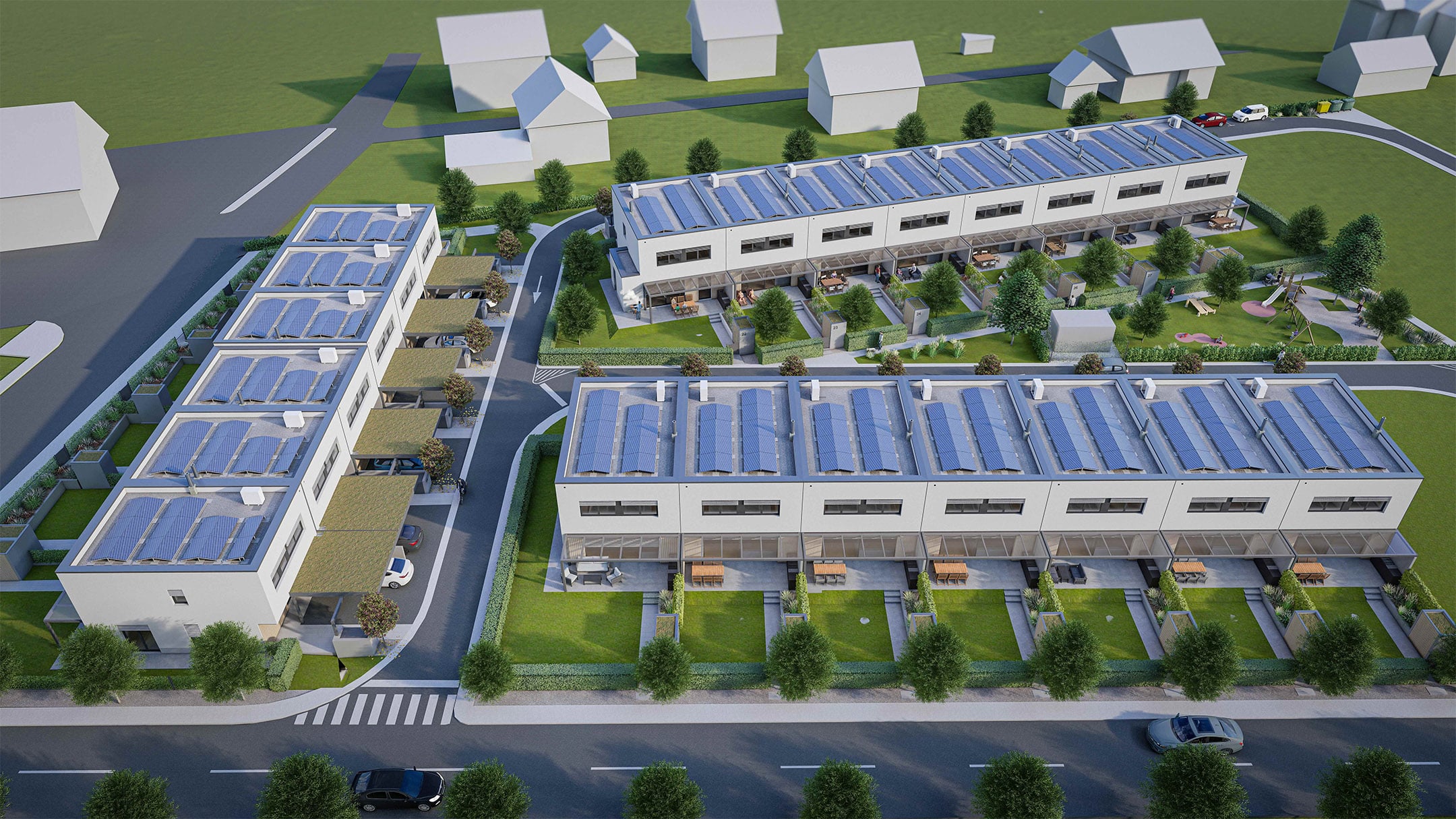 - External walls feature 20 cm of thermal insulation; houses are separated by 10 cm of sound insulation