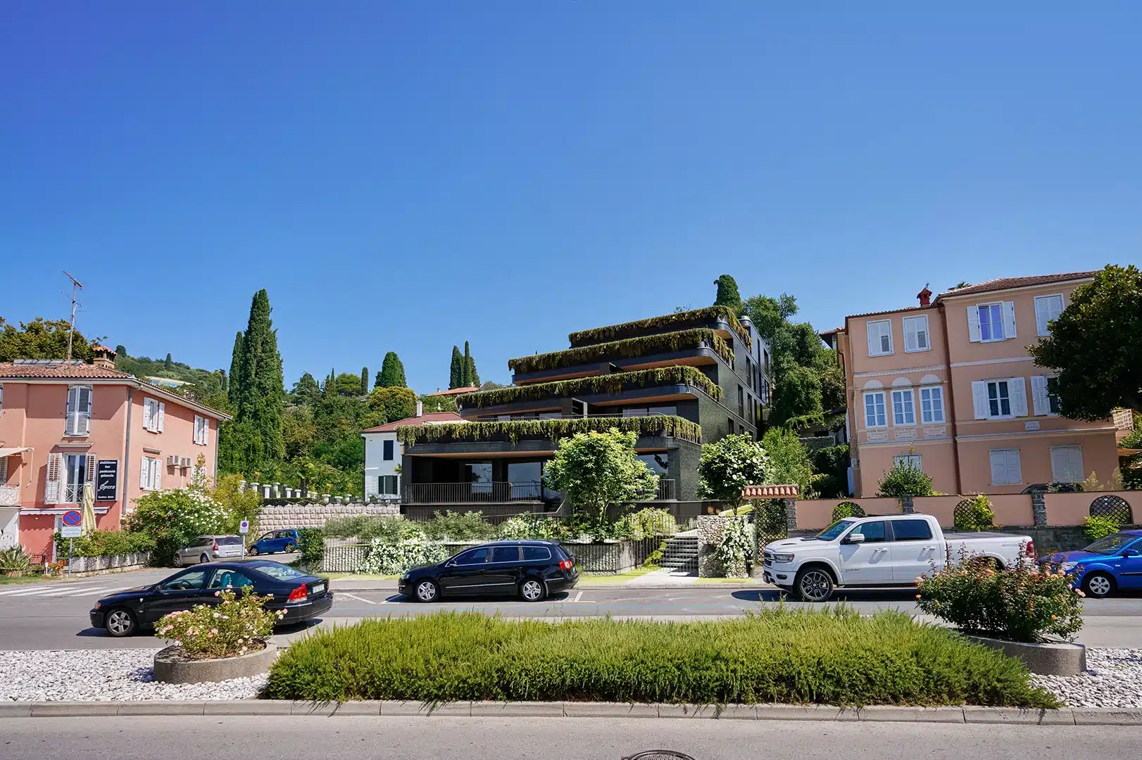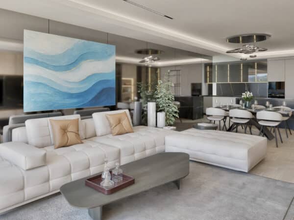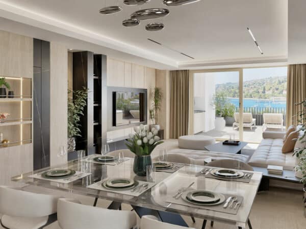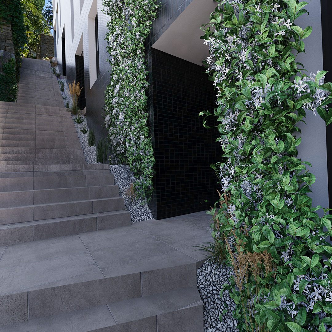 The architectural concept follows the natural slope of the terrain, creating a refined cascading composition of volumes that results in spacious, intimate, and fully usable terraces. These open widely toward the sea, providing an abundance of natural light and a direct connection to the outdoor space on all levels. Each apartment is designed with a focus on maximizing sea views, ensuring a high level of privacy, and delivering an exceptional living experience that evokes the feeling of residing in a luxury seaside villa.