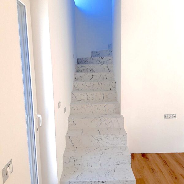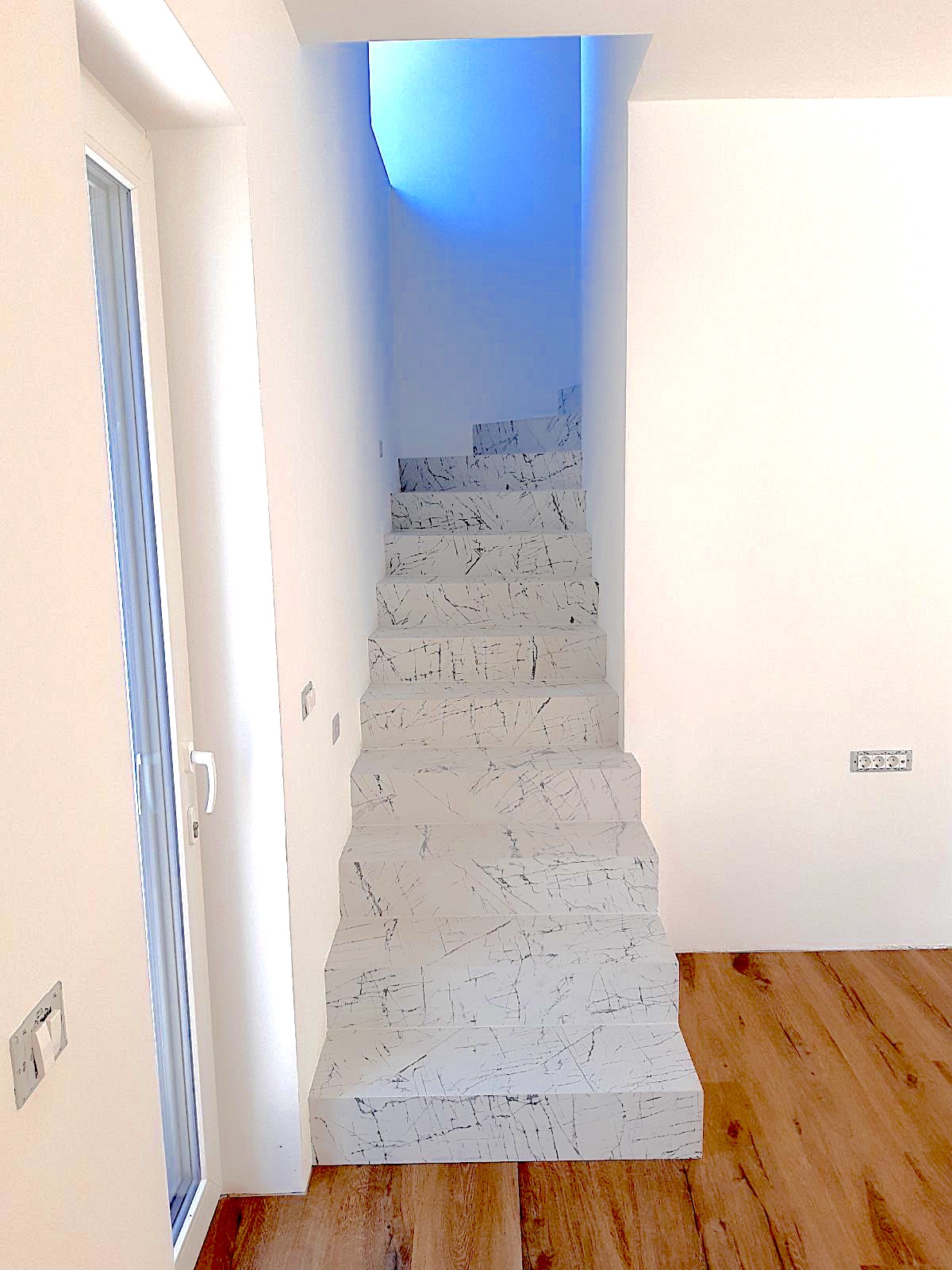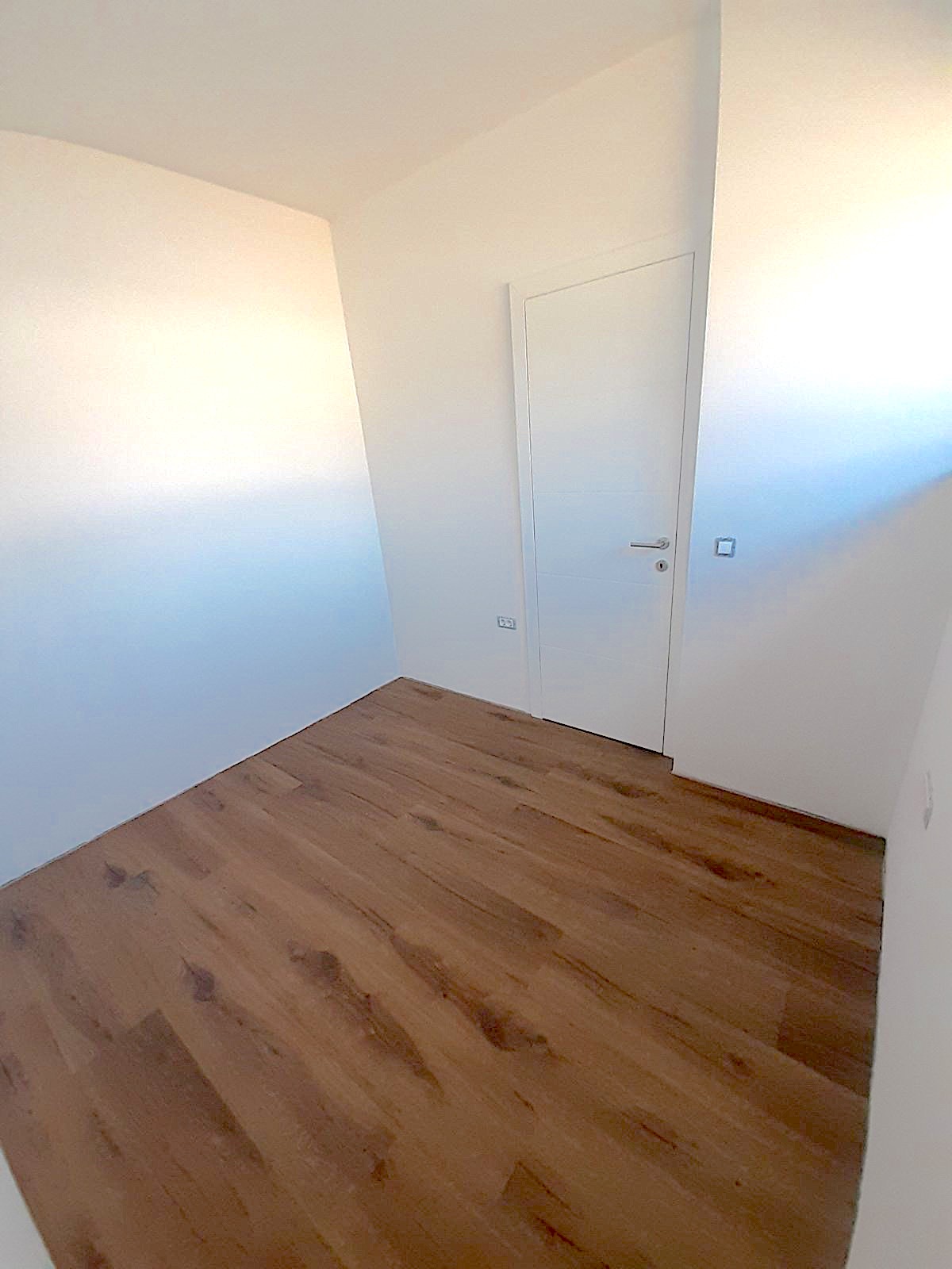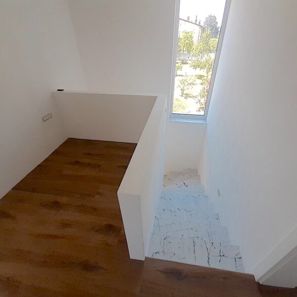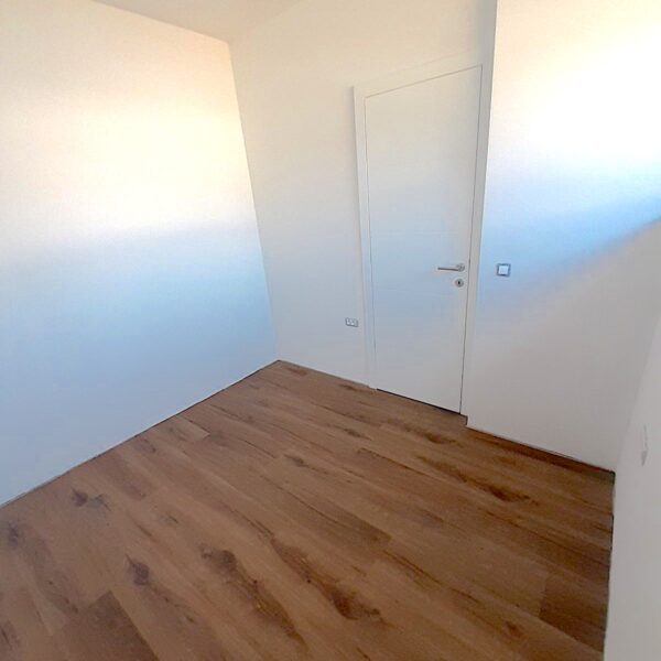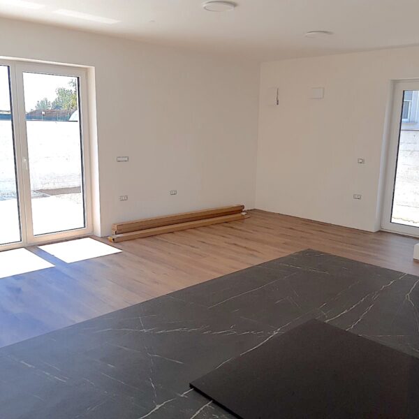 Hiša je bila zgrajena v letošnjem letu in ima 130 m2 stanovanjske površine ter dve etaži. V pritličju se nahaja hodnik, soba in opremljena kopalnica, prav tako sta pod stopniščem shramba in tehnični prostor. Bivalni prostor prvega nadstropja vsebuje opremljeno kuhinjo, jedilnico in dnevni prostor z izhodom na teraso. V prvem nadstropju se nahaja velika spalnica z garderobo, dve svetli otroški sobi in opremljena kopalnica.