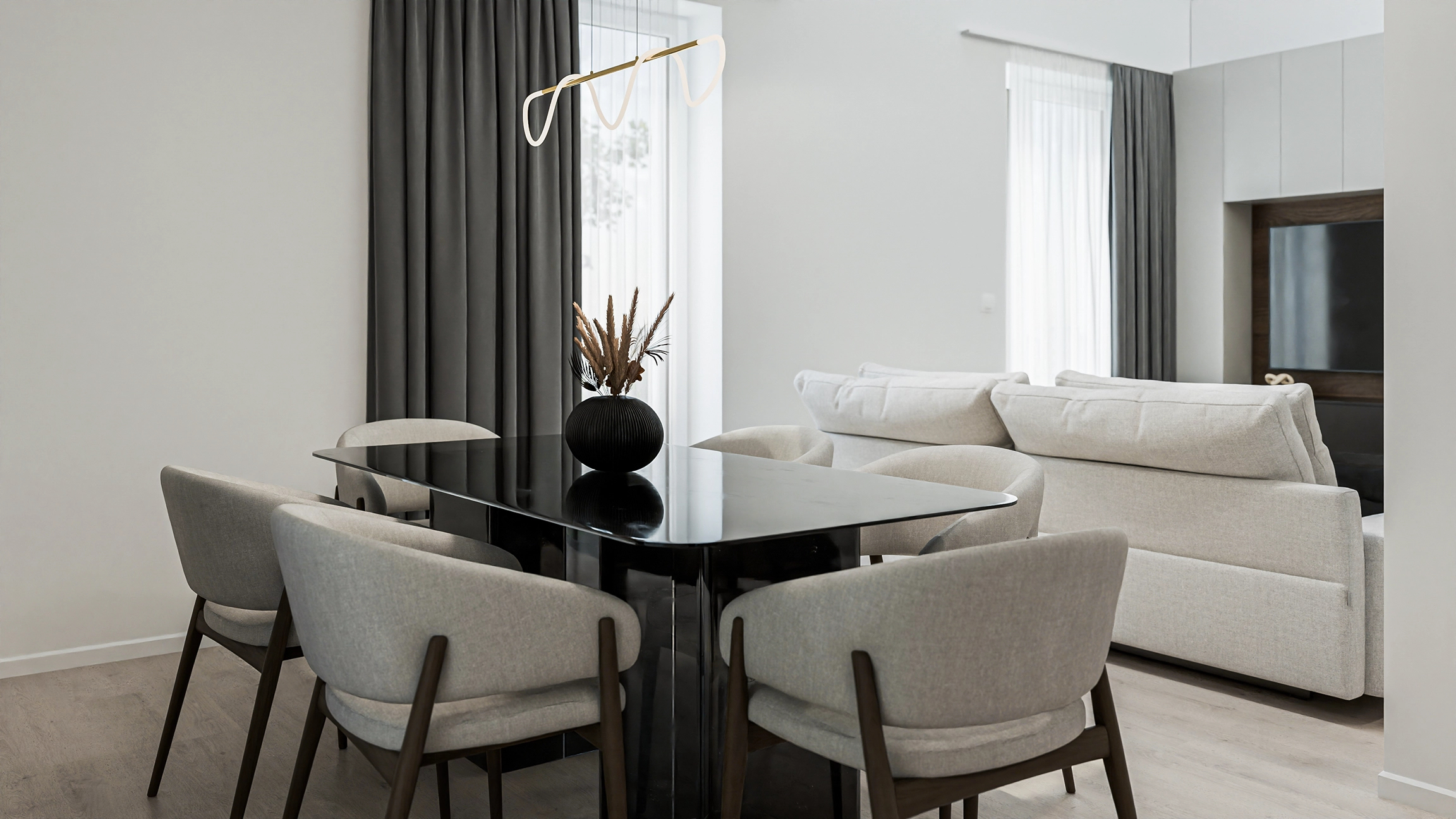 – Visoka kakovost materialov: troslojni parket, kakovostna keramika, polna notranja vrata s skritimi nasadili, protivlomna in protihrupna vhodna vrata