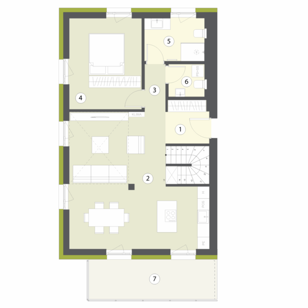 – Talno gretje, lokalna rekuperacija, avtomatske žaluzije in videodomofon